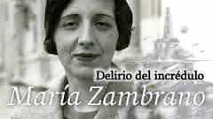 La autora del poema de este último domingo de octubre es María Zambrano, la gran filósofa española, o pensadora como a ella le gustaba definirse, empeñada siempre en tender puentes entre la filosofía y la poesía, cuya escritura también practicó. De hecho, la médula de su actividad intelectual radica en lo que ella denominó la “razón poética”, un modo profundo de pensar que tiene en cuenta el valor de las imágenes, los sentimientos, las metáforas, las pasiones... Como en la poesía. María Zambrano se sentía influida por igual por poetas y filósofos. En el poema que hoy comparto, titulado ‘Delirio del incrédulo’, escrito en Roma en el año 1950, la autora indaga en el sentido de la nada o del vacío, tema recurrente en su obra, en especial en el libro ‘Claros del bosque’, uno de sus libros fundamentales, en el que filosofía y poesía se funden armoniosamente, al igual que en este poema (ella llamaba delirios a sus poemas) que comparto hoy. (Andrea Villarrubia Delgado)